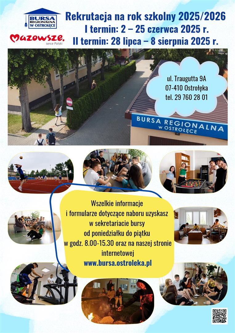 Plakat rekrutacyjny Bursy Regionalnej w Ostrołęce